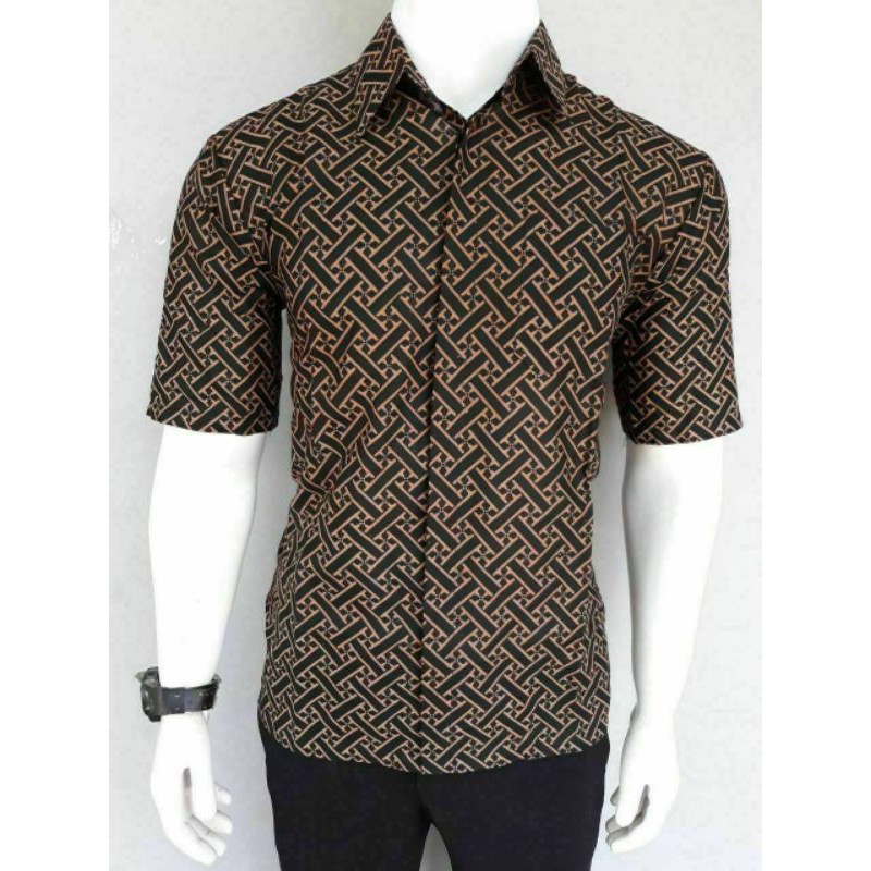 Name: Bswart Batik Hrb026 Kenongo Hem Pendek Pagar Coklat Pekalongan M L Xl Batik Pria Murah Modern Grosir